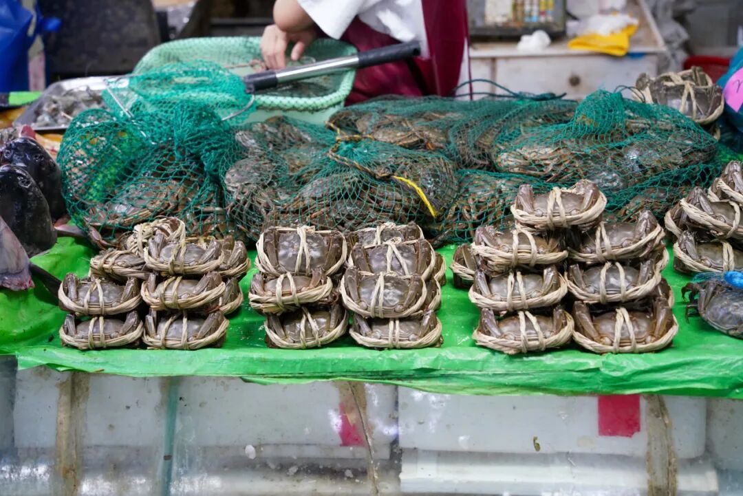 秋风起,蟹脚痒 随着初秋凉意渐浓 各大菜市场、生鲜超市内 备受食客期待的大闸蟹 正式拉开上市序幕 首批大闸蟹的品质、价格和市场行情 究竟如何? 快跟着小编一起实地探访 上午9点的南桥集贸市场内人头攒动、热闹非凡。“吃货们”一大早便揣着菜篮、拎着环保袋,径直往水产区赶。一只只青背白肚的大闸蟹用草绳扎实捆扎着,时不时吐出细密的白色泡泡,摊位前“太湖直供”的标语与空气中弥漫的湖水清香交织在一起,成了市场里最醒目的“秋日信号”。 “今年第一批蟹刚到3天,每天凌晨4点从蟹塘运过来,不到10点就能卖掉大半!”摊主陈阿姐一边给顾客称重,一边笑着介绍,为了抢占“鲜机”,她特意提前一周从苏州太湖蟹塘预订了首批货源,每天限量供应200斤,“现在来买的多是老主顾,就想尝第一口鲜!” 摊位前,几位市民各有各的挑选方式。有的拿起螃蟹轻轻捏肚子,感受脐部下方的紧实度,“捏着硬邦邦的,说明蟹黄满,要是软塌塌的,肉就空了!”阿嬢一边捏一边分享着挑蟹“秘诀”。 家住附近小区的王阿伯手里已经选好了5只母蟹,他一边把蟹放进菜篮,一边跟旁边的人分享经验:“我每年都这么挑,先看蟹壳颜色,越青黑越新鲜,再捏蟹腿,能感觉到肉撑着壳的才好。” 据摊主介绍,首批上市的大闸蟹主要来自太湖、骆马湖等知名产区。“今年夏天雨水适中,光照充足,大闸蟹的长势比去年好,首批蟹的规格普遍在2~3两,母蟹蟹黄饱满度能达到70%以上,你看这蟹,脐部都鼓着,公蟹虽然还没完全成熟,但肉质已经很紧实了。”摊主拎起一只还未捆绑的大闸蟹展示着。 而价格方面,首批上市的大闸蟹呈现“亲民”态势。目前3两左右的大闸蟹价格在30~40元每只,小一些的价格为15~20元每只,这个价格比去年同期低了5%~10%,主要是今年蟹塘养殖规模稳定,货源充足。摊主指着竹筐里捆扎好的大闸蟹说,“目前最畅销的是2.5两的母蟹,每天能卖八十几只,再过10天左右,3.5两以上的母蟹和公蟹会大量上市,价格还会下降10%左右,到时候市民就能买到更划算的大闸蟹了!” 大闸蟹怎么吃? 食用小贴士快收藏! 大闸蟹的吃法多种多样,但最经典的,还是水煮或清蒸。能最大限度地保持大闸蟹的色、香、味。 食用小贴士 蘸汁配料: 一勺生抽+少许糖+三勺香醋+姜丝 吃法: 1.先吃蟹腿肉,剪开蟹腿两头,用蟹镊捅出。 2.蟹螯,剪开两头,即可掰开,用蟹勺挖肉。 3.吃蟹黄、蟹膏之前记得先净口,去掉蟹心,用蟹勺挖出即可。 4.剪开蟹身,即可用蟹刺剔出蟹肉。 “四部件”不能吃: 螃蟹的蟹腮、蟹心、蟹胃、蟹肠不可食用,必须除尽。