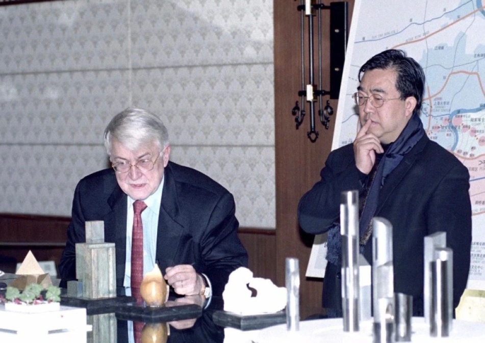 陈逸飞与夏邦杰共同创意世纪大道景观,1999(摄影:姚建良)