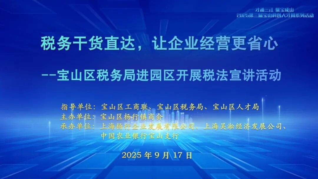 为进一步优化营商环境,助力企业稳健发展,实现更省心经营,近日,宝山区杨行镇商会在杨行工业园区组织开展了2025第三届宝山科创人才周系列活动之宝山税务局进园区税法宣讲。此次活动得到了宝山区工商联、宝山区税务局、宝山区人才局的精心指导,吸引了近50家企业代表的积极参与。
