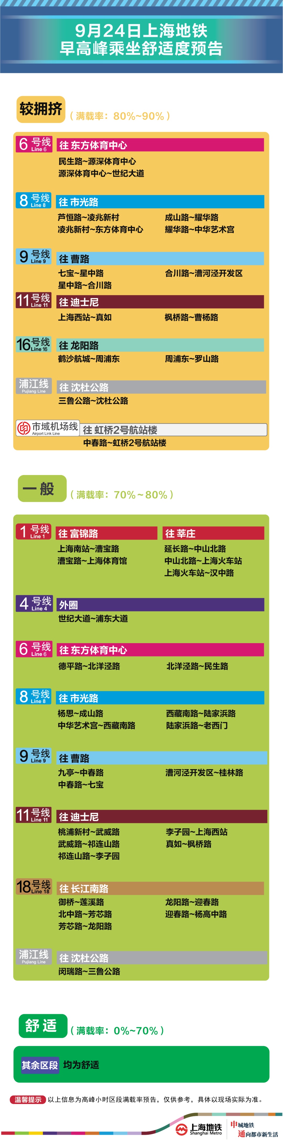 为提升上海地铁早高峰期间出行服务水平,提升乘客乘坐体验,上海地铁向乘客提供乘坐舒适度预告,方便乘客提