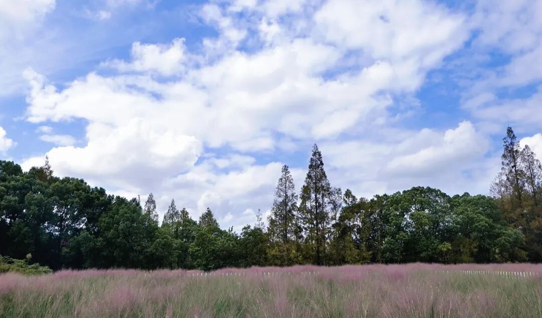 “照片拍出来特别有氛围感,蓝天白云好像给粉黛打了滤镜。”生怕台风影响粉黛景致的游客张先生天不亮就从市区驱车赶来,“粉黛草很娇嫩,刮风下雨会让观赏效果大打折扣,所以赶紧过来。”