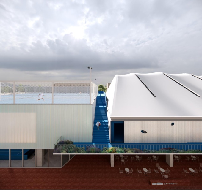 网球共合体是完美契合位育中学校园空间拼图的高能网球“芯片”。高效集约的建筑体量由环境雕刻而来,轻盈透亮,稳重而又富有动感。方案功能生态多样,即是网球场,更是网球教学和网球文化活动的“全生命周期”设施。