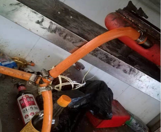 判定说明:连接软管严禁私接“三通”。此类隐患存在连接处、用气设备等泄漏风险