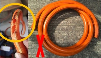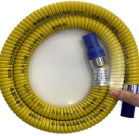 判定说明:燃具专用连接软管使用年限不得低于8年(目前市面上满足条件的有不锈钢波纹软管和金属包覆软管),禁止使用橡胶软管。