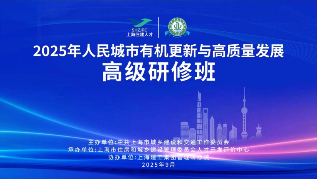 为深入学习贯彻中央城市工作会议精神,践行人民城市重要理念,推动行业高层次人才队伍建设,根据市建设交通“十四五”人才发展规划和专业技术人才知识更新计划,2025年人民城市有机更新与高质量发展高级研修班于9月18日-20日举办。本次研修班汇聚各方智慧,围绕城市更新展开深入研讨,为推动城市高质量发展提供新思路、新方法。 城市更新是提升城市品质、改善民生福祉的重要举措,是推动城市高质量发展的关键路径。此次城市更新高研班的举办既是贯彻落实中央城市工作会议精神的具体实践,更是为城市更新储备人才、积蓄力量的重要举措。高研班课程内容丰富、形式多样,邀请了政府部门、知名专家学者和企业代表,聚焦城市更新政策文件、发展模式、实践创新、数字赋能等专题,通过专题讲座、小组讨论、学员论坛、现场教学等形式,解读政策法规,分享实践经验,探讨技术创新应用和城市高质量发展路径。