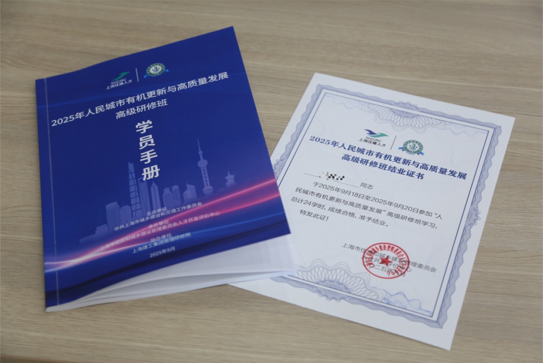 < > 左右滑动查看更多 小组讨论和学员论坛环节气氛热烈,学员们结合自身工作实际,就城市更新的实践与创新展开深入交流,碰撞出思想的火花。现场教学环节,学员们走进上生·新所,亲身感受城市有机更新带来的变化,学习项目在规划理念、建设模式、运营管理等方面的先进经验。 东方英才计划青年项目城乡治理平台城市治理领域入选人才、“城市之星”城市治理青年人才创新大赛获奖选手、建设交通系统优秀青年人才、行业中有专业知识更新需求的高级专业技术人才64名学员参加了培训。通过系统学习和交流互动,学员们拓宽了视野,提升了专业素养和创新能力,对城市更新有了更深刻的认识和理解。大家纷纷表示,将以此次研修班为契机,把所学知识运用到实际工作中,为推动上海城市更新、实现高质量发展贡献力量。 学员证书