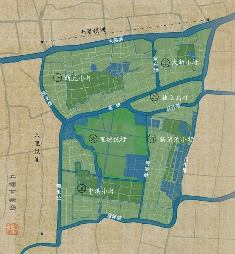 圩田是江南地区传统的农业生产土地利用方式,自唐宋以来,江南地区的圩田是支撑中国农业经济发展的核心区域,也为构建文化上世人向往的江南意象提供了景观基础。圩田正是解密新元基因的一把钥匙,其独特的水包田、田包村、村包田格局是自然地理条件与人类活动长期互动的产物。