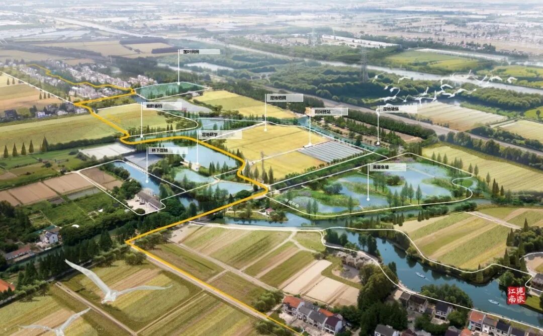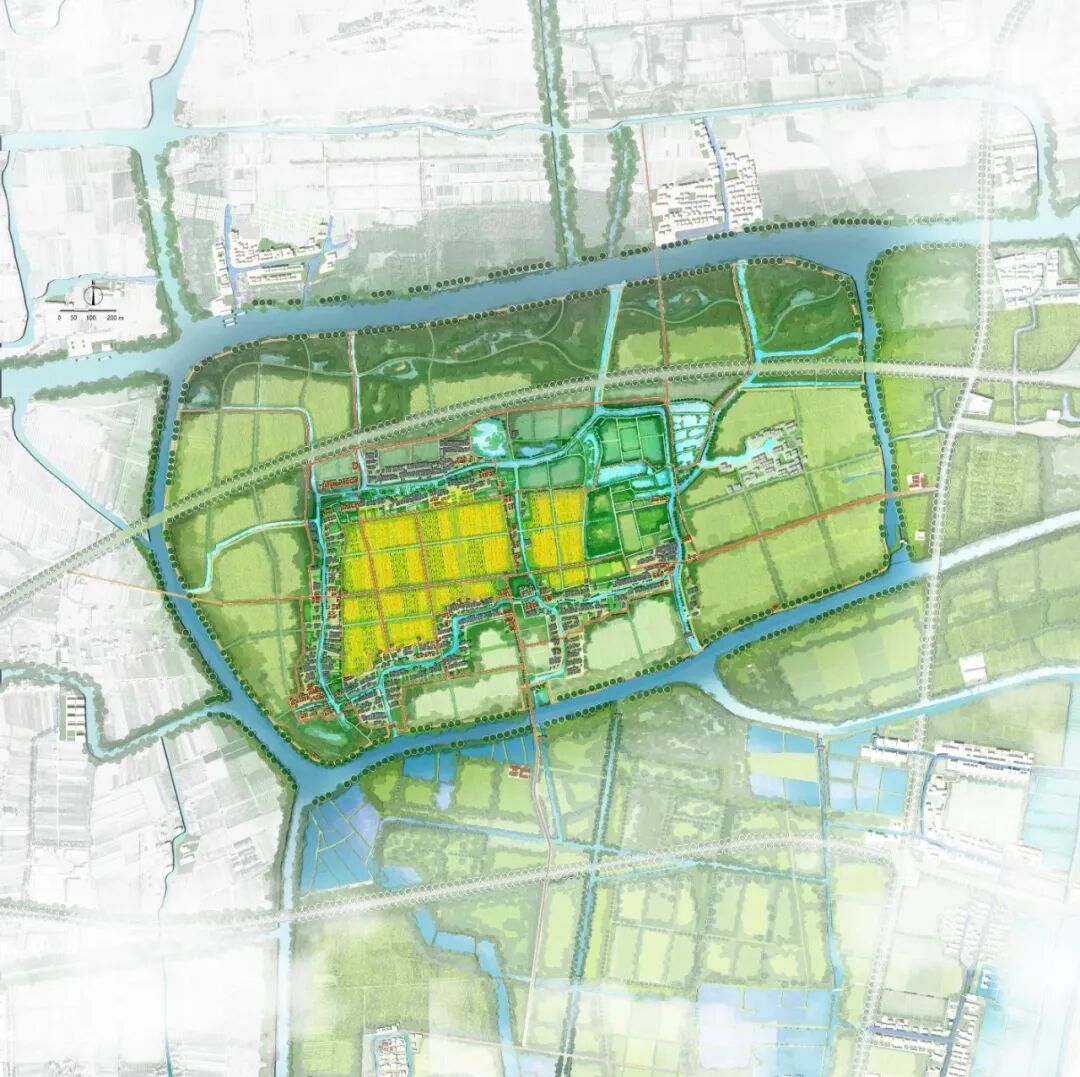 金山区枫泾镇新元单元,是上海近期在保护和传承江南水乡文化方面的重要举措——沪派江南的首发试点之一,由上海同济城市规划设计研究院有限公司牵头“三师联创团队”,以保护和传承上海乡村传统文化为主线,以营造沪派江南水乡特色风貌和发展愿景为引导,以“一张蓝图”统筹协同乡村各项建设行动,全要素提取“水、林、田、湿、村”水乡肌理和基因,整体识别单元蓝绿基底与文化特征,依托区域资源和特色产业基础,聚焦生态文化优势,将新元单元营造成为“塘浦纵横开沃野,莲叶田田六小圩,几处雨蛙诉乡情,行纪踏歌绘丰年”的千年圩田水乡画境。