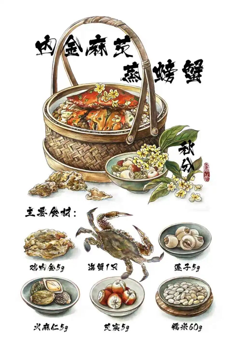 今天让我们试试这份秋分药膳美食——内金麻芡蒸海蟹。