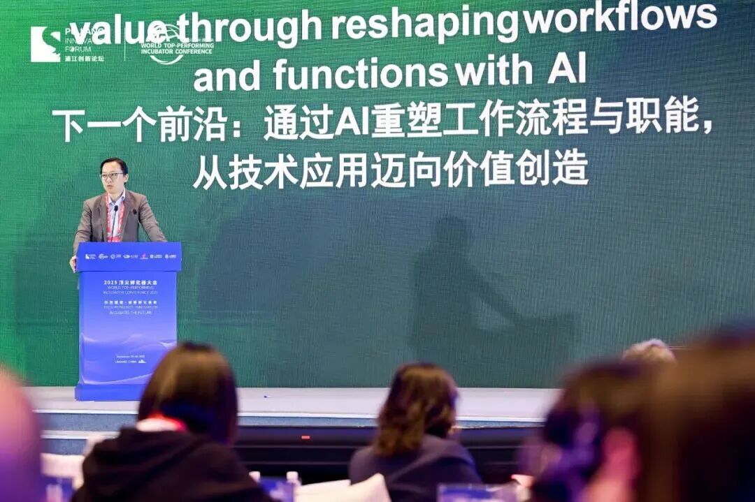 如果说高校与产业共创创新生态是“供给侧”的深耕,那么全球孵化趋势与资本流向则是“需求侧”的敏锐变革。波士顿咨询公司(BCG) 董事总经理及全球合伙人俞晨骜分享了一组数字——企业创新与资本回报紧密相关,创新驱动的企业市值长期表现更优。他接着指出:“AI的出现把传统制造企业和互联网巨头都拉回了同一起跑线。孵化器要做的,就是让不同阶段、不同资源的企业,都能用生成式AI补齐传统模式中的短板。”