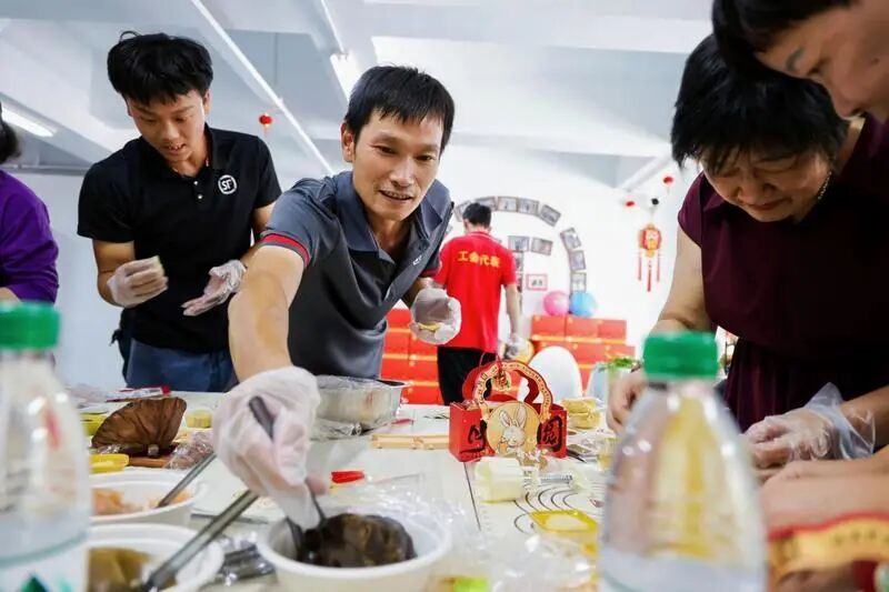 伴随着国庆、中秋双节临近,小东门社区节日氛围渐浓。9月22日下午,“月暖东门·新业共治”中秋活动在中华路上的顺丰快递驿站内开展。正值中华人民共和国成立76周年和全国总工会成立100周年,快递小哥与社区老人一起制作月饼,以“手作传暖”与“共治参与”为基层治理增添温情。