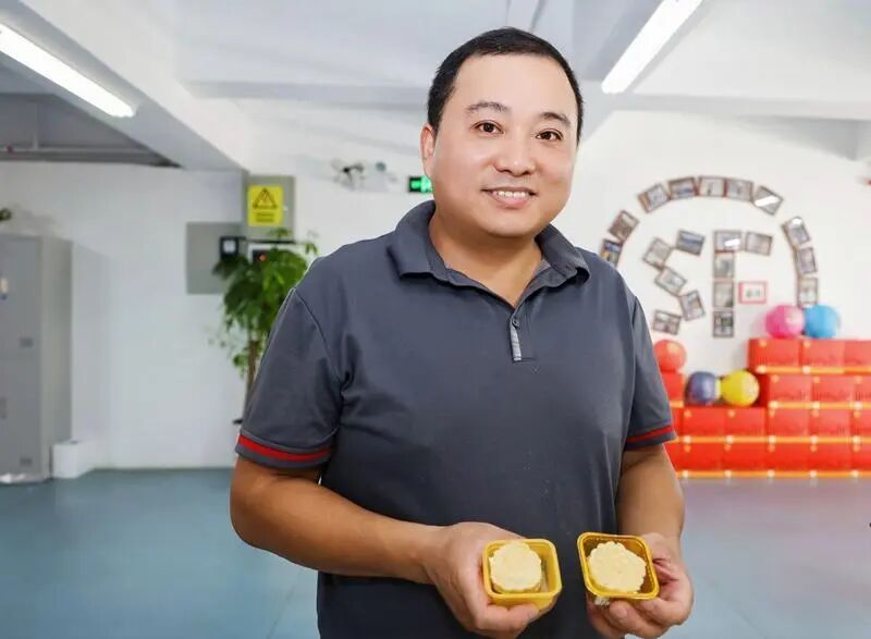 月饼DIY区域气氛热烈。能直接食用的冰皮面团、低糖莲蓉和豆沙馅料,以及印有“中秋快乐”字样的卡通模具,引起了快递小哥们的兴趣。“第一次做月饼,没想到这么简单,还很好吃!”在专业老师的指导下,快递小哥们揉面、包馅、压模,几分钟便完成了一个个精致的冰皮月饼。