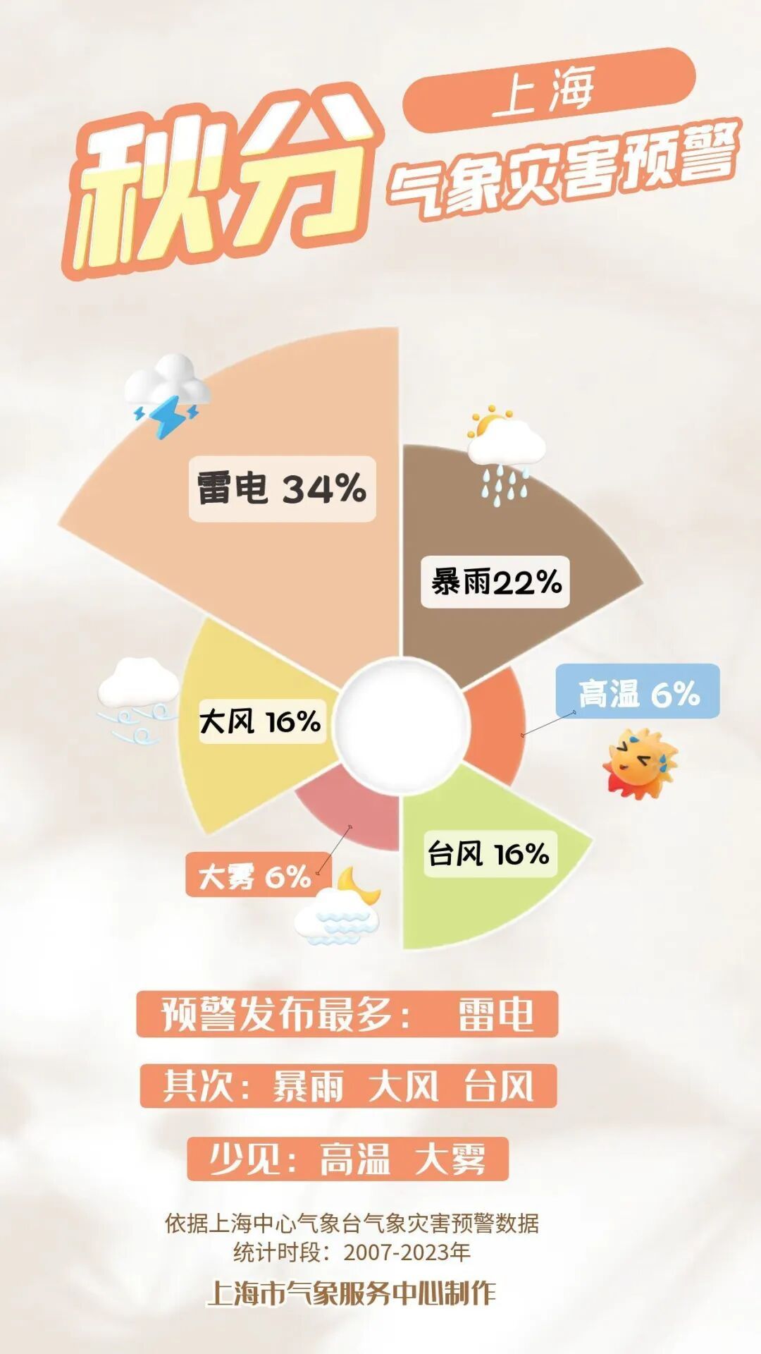 今天进入二十四节气中的“秋分”,是上海夏秋过渡的时节,最常见的气象灾害预警是雷电和暴雨。