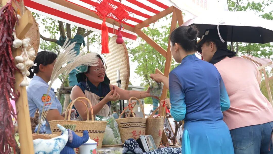 活动现场,热闹非凡的集市宛如一幅乡村画卷,徐徐展开在人们眼前。华亭三白、外冈大米、马陆葡萄……踏入集市,嘉定特色农产品琳琅满目,让人应接不暇。20个精心布置的展位错落有致,不仅展示着嘉定绿色、有机、名特优新和地理标志农产品,还巧妙地融入了民俗非遗和传统手工艺元素,在强化绿色健康消费理念的同时,也为大家带来了一场生动的科普宣传之旅。