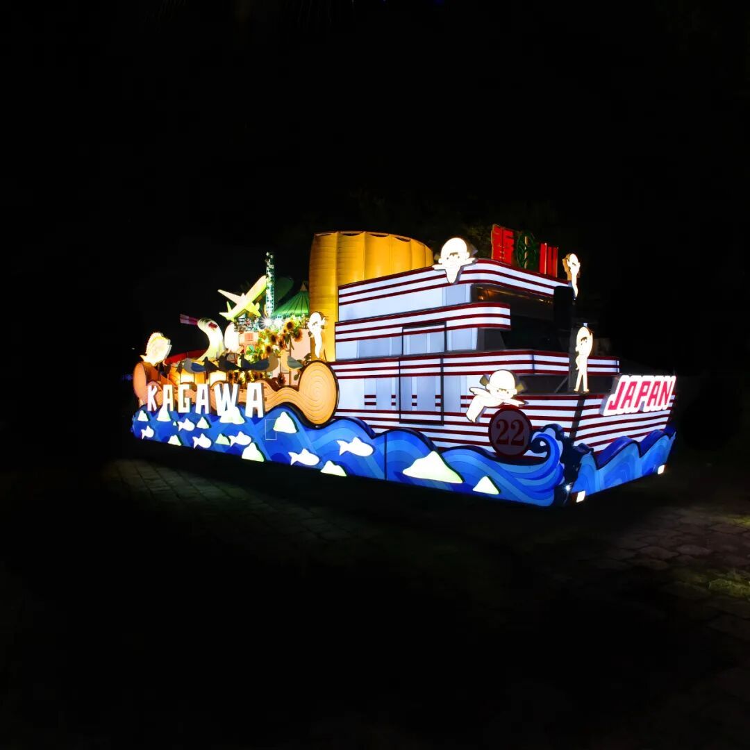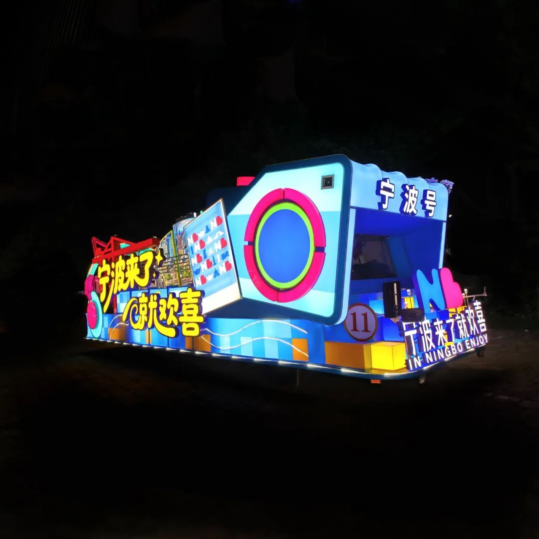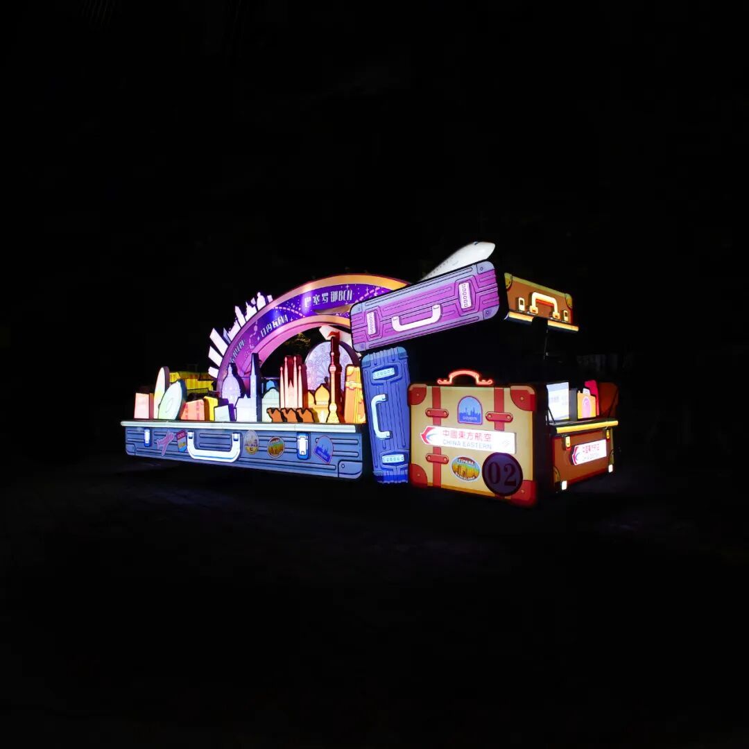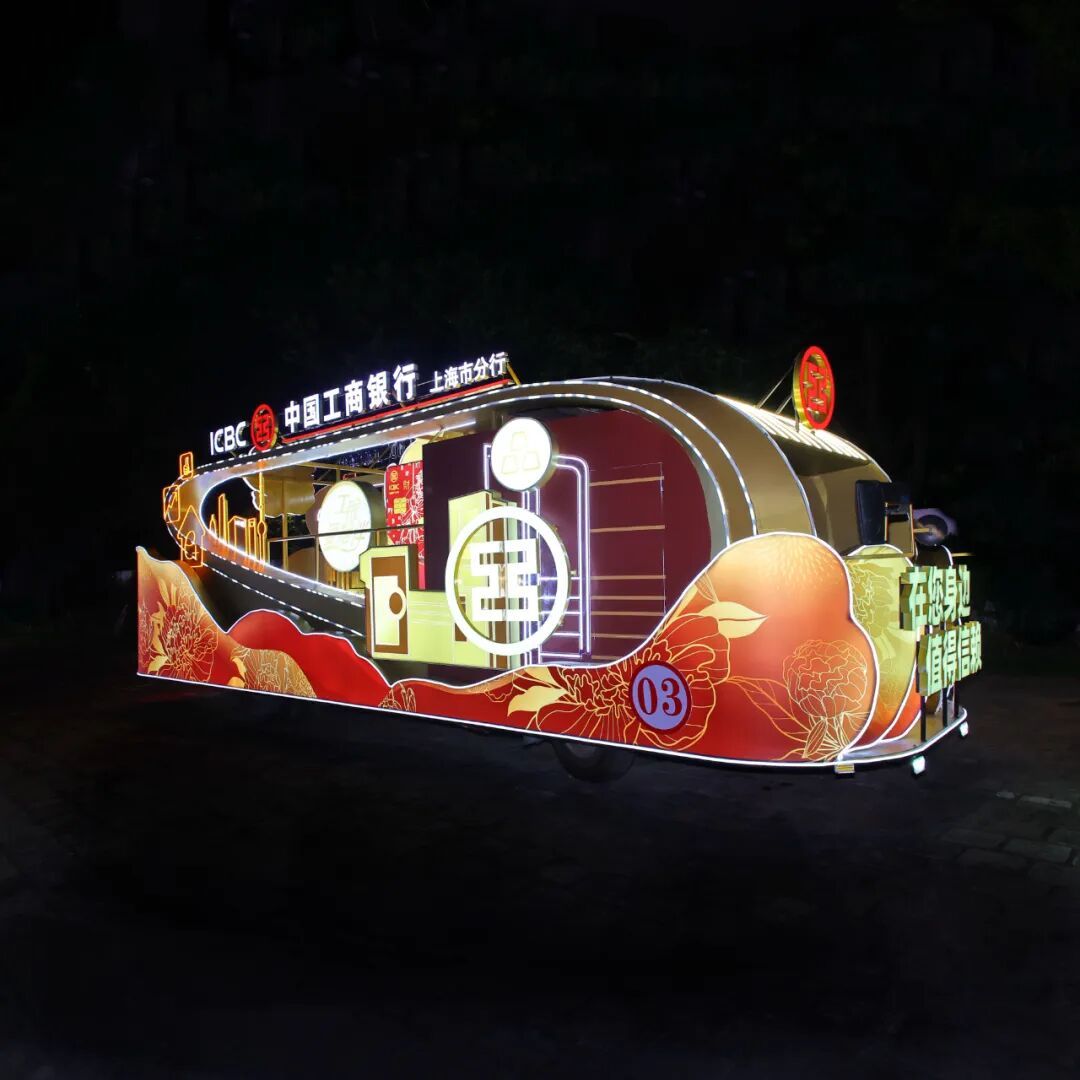 南翔的「中国国潮第一镇」炫彩花车仿佛一座“国潮万花筒”。车首,千年双塔与翩然仙鹤相映成趣,祥云缭绕间,“小笼包宝宝”俏皮探头,车身汇聚了南翔本土顶流IP阵容。