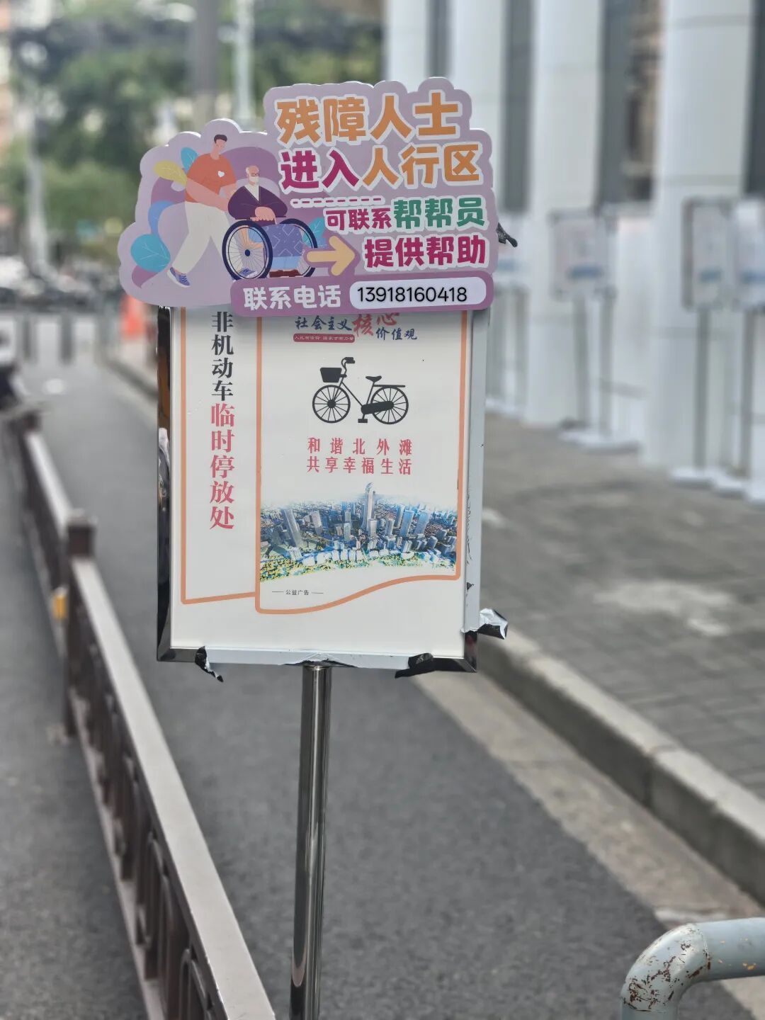 北外滩街道第一综合网格工作人员介绍说:“我们收到市民群众的反馈后,联合交警大队、城管中队、街道社管办、残联等共同到现场会商研究。”大家决定对隔离栏两端入口硬件设施进行优化调整,留出方便轮椅进出的空间,并在显著位置增设引导标识牌。