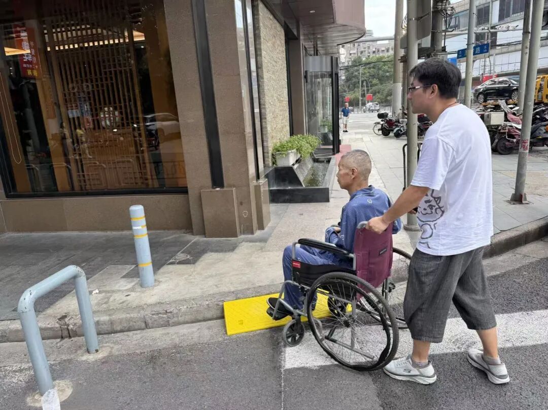 一段短坡、一串号码、一个指示牌……近日,乍浦路美食街悄然焕新,人行隔离栏两端通过优化调整,为轮椅进出留出了空间,畅通残障人士“最后一米”。
