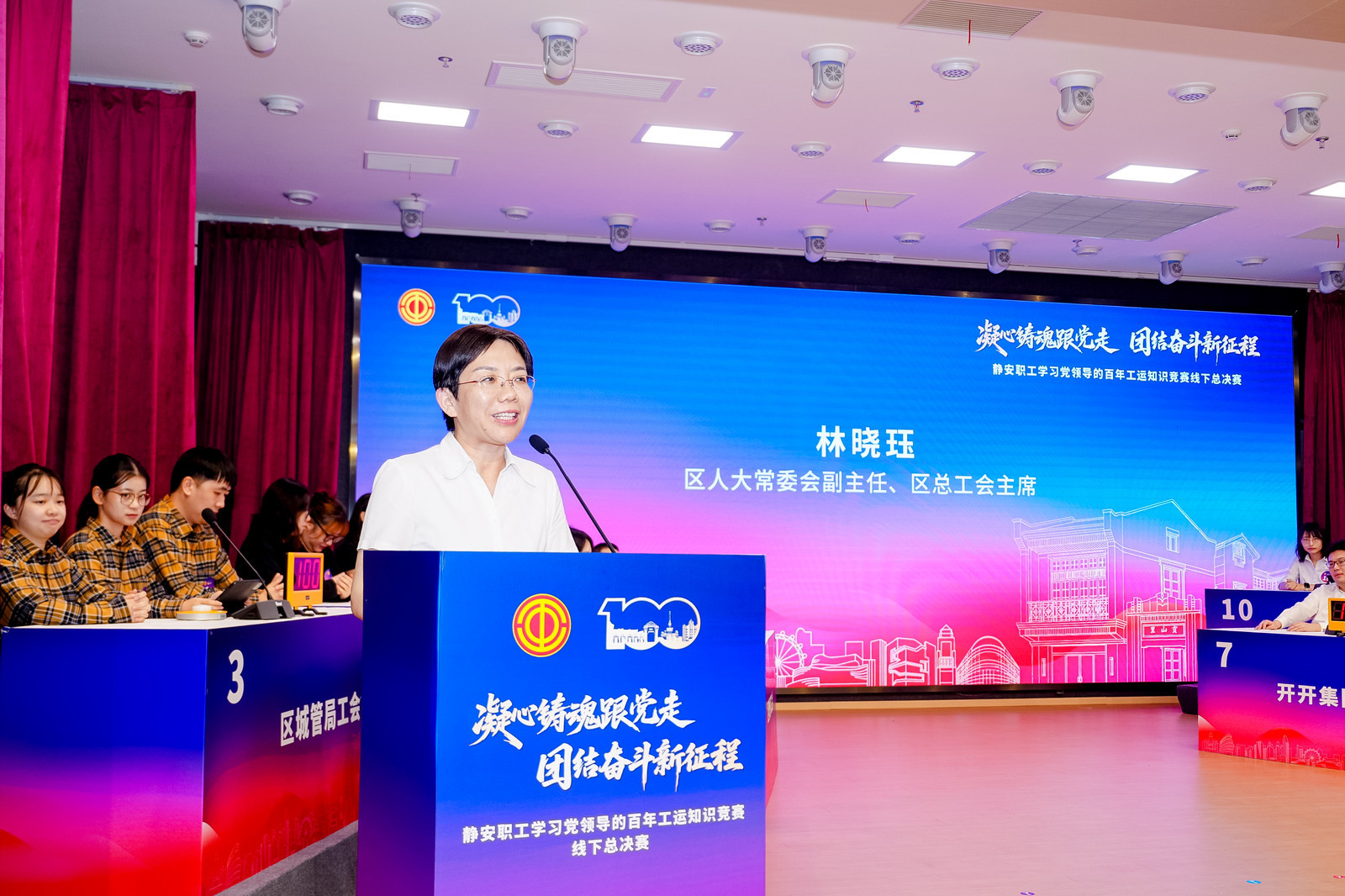 9月23日,“凝心铸魂跟党走 团结奋斗新征程”静安职工学习党领导的百年工运知识竞赛线下总决赛在彭浦镇社区文化活动中心举行。静安区人大常委会副主任、区总工会主席林晓珏出席。上海工会管理职业学院、静安区文化和旅游局有关领导担任现场评委。