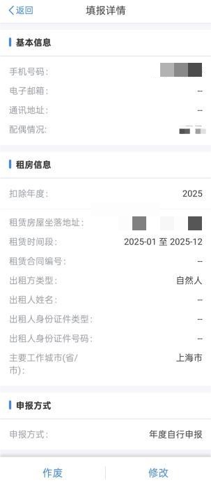 如果之前填写过本年度的住房租金专项附加扣除,先确认此前填报的信息是否正确。如果前一份租赁合同终止或者中止后,签订了新的租赁合同,需要确认之前填报的信息,特别是租赁的起止时间是否正确。