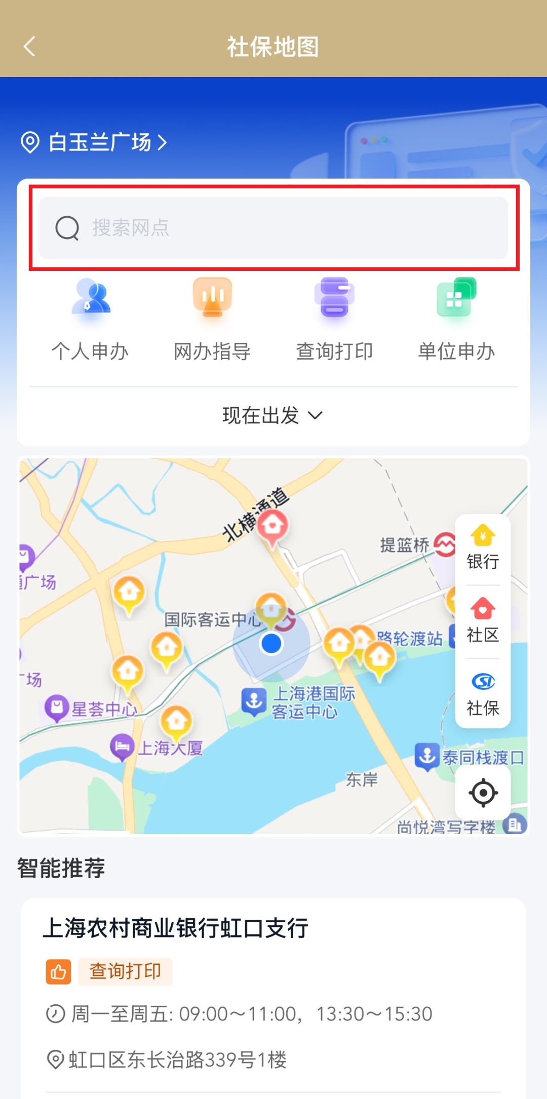 在首页搜索“社保地图”,或进入“社保”服务专区找到入口;