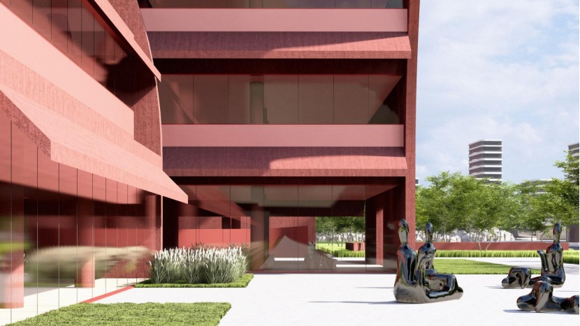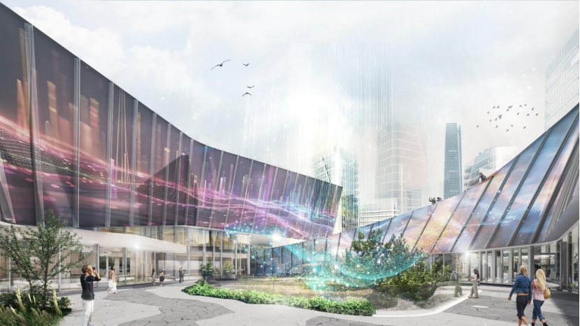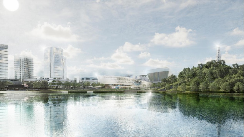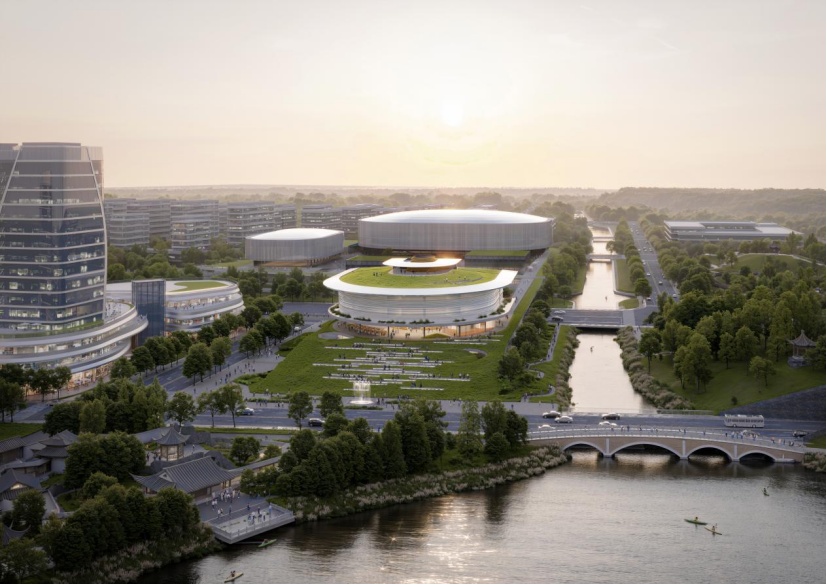 建筑通过两条体量的交汇环合来呼应从上海之本的冈身地貌、到长三角一体化的南北拓展、再到未来周边传统文化与未来科创的古今交汇,并塑造了一个全景式自然交汇、螺旋上升内外交汇和立面材料光影交汇的多层次“眸”之展示空间体验。
