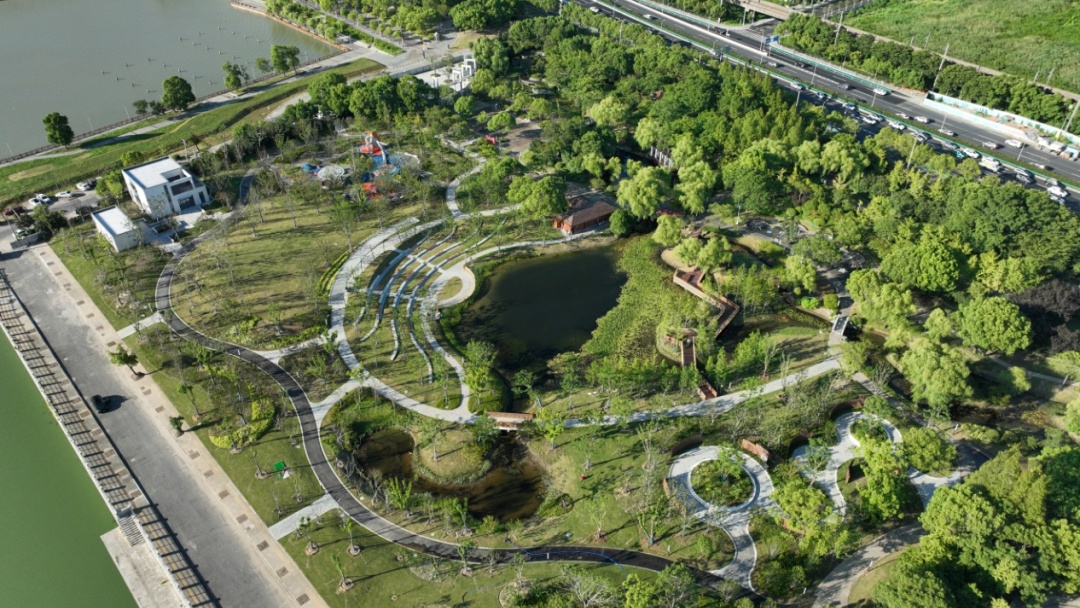 陈行公园位于闵行区浦锦街道浦星公路以西、江月湖以南。公园于1999年第一次建成向公众开放,深受当地居民的喜爱。2024年,为进一步满足广大居民群众日益增长的户外休闲活动空间需求,浦锦街道对其进行二次改扩建,在原3.9公顷面积基础上向西扩建2.07公顷,扩建后公园总面积为5.97公顷。现已完成竣工验收,并将于2025年9月26日正式开园。