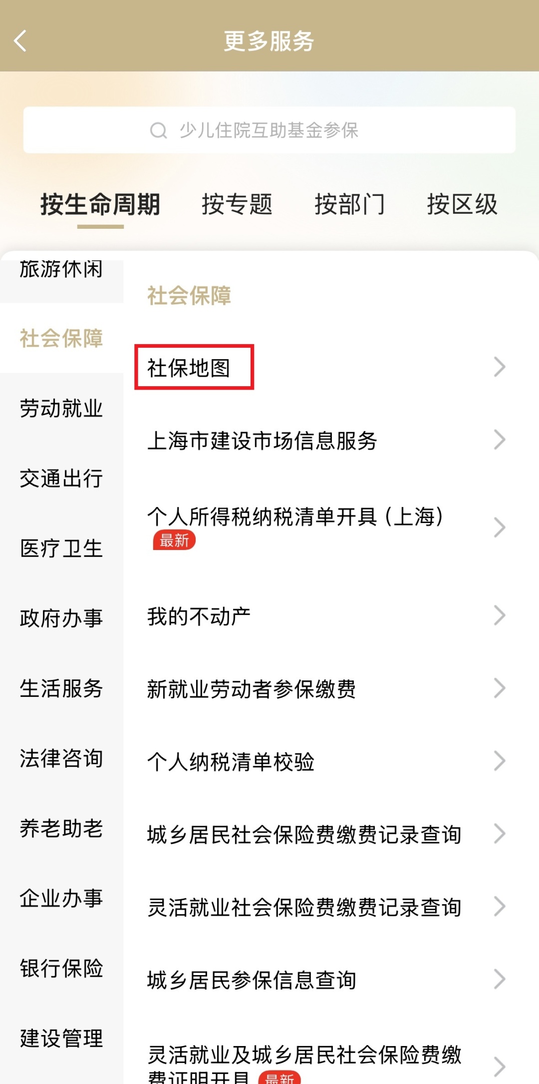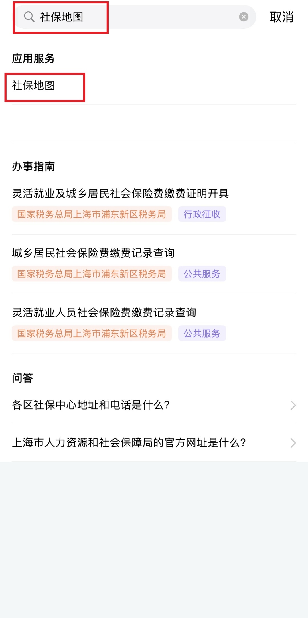 第二步 在首页搜索“社保地图”,或进入“社保”服务专区找到入口;