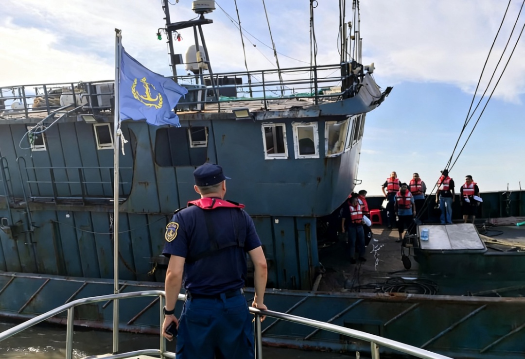 海巡艇靠岸后,获救船员第一时间被转移至海事趸船。崇明海事局工作人员随即对他们开展心理疏导,同时进行全面身体检查,确认8人身体状况良好、无一人受伤。后续协调的拖轮也及时抵达现场,成功协助搁浅渔船脱浅。