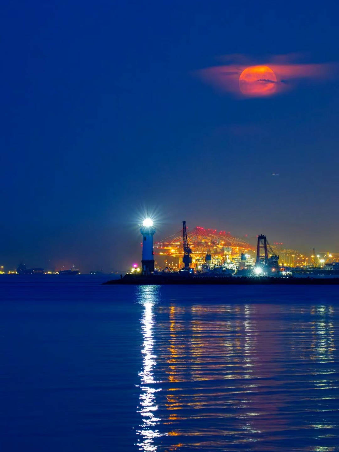 酒足饭饱后,漫步在滨江之畔,抬头仰望那一轮皎洁明月,与家人一同沉浸在这团圆时刻的宁静与美好之中,享受温馨惬意的时光。