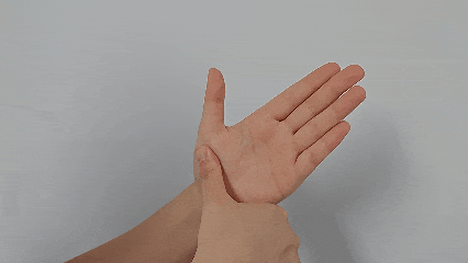 找到手掌大拇指根部下方那块最厚的地方(掌心一侧),用另一只手拇指按压并轻揉,持续3~5分钟,感觉到轻微酸胀即可。