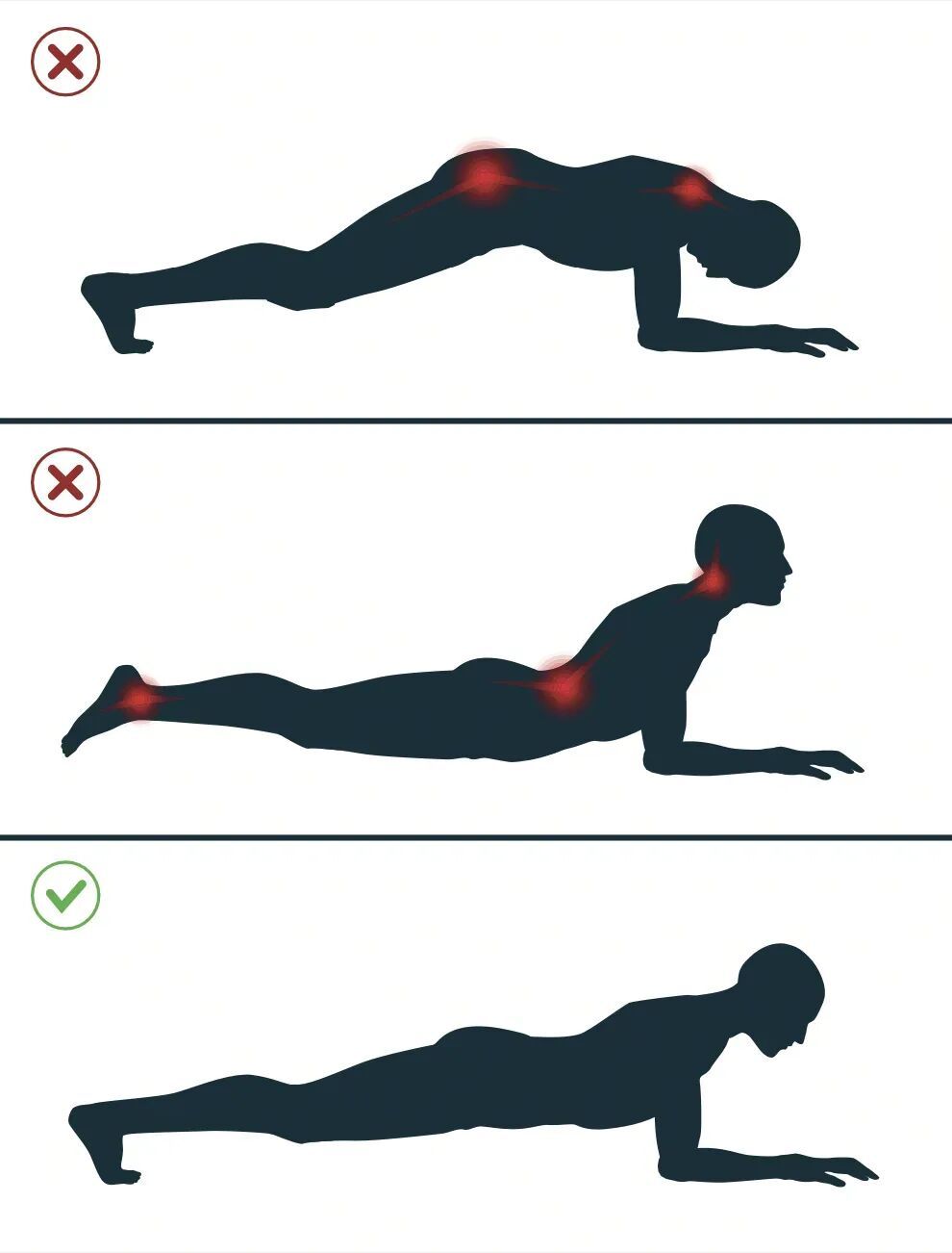 ❌撅屁股。臀部抬得过高,会大大减弱对核心肌肉的训练效果,让训练变得更轻松,也更无效。