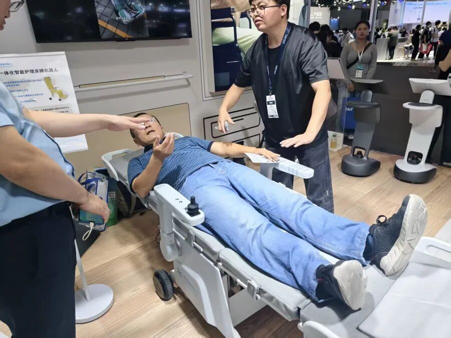 “这是我们专为失能及术后人群设计研发的智能护理机器人,相当于一个床旁的智能马桶,当机器人通过传感器监测到大小便时,能抽吸原理吸到污水桶里,且机器人具备自动清洁和烘干功能,还搭载了翻身床架,可以定时进行左右翻身,既能减轻照护者的劳动负担,也能提升患者的舒适度。”伊利诺市场总监马夏怡说。公司花了13年时间迭代了5代产品,一台护理机器人身负12项原创发明、100多项国内外专利,目前已远销国内外多个国家。