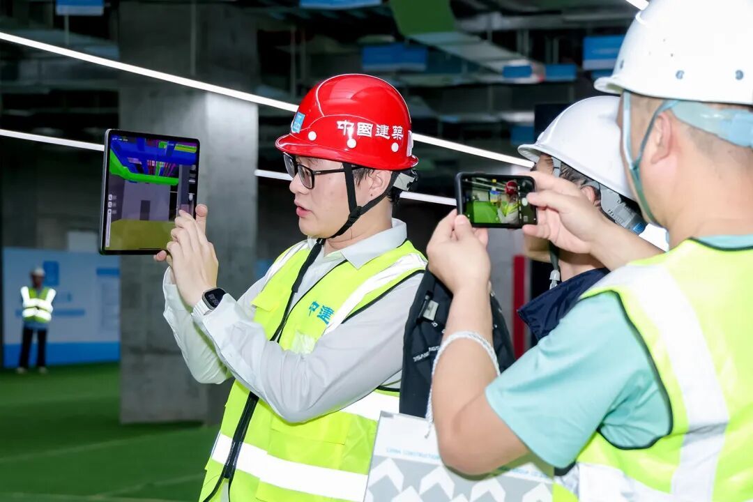 记者看到,现场施工人员只需佩戴VR设备或携带移动设备,现场实景与预设数字模型即可实时叠加。这如同为施工人员赋予了一双“透视眼”,让他们清晰“看见”管线的排布路径、设备的安装位置,真正实现“所见即所建”。这一技术不仅将一次安装合格率大幅提升,更让复杂节点的施工变得精准且直观。