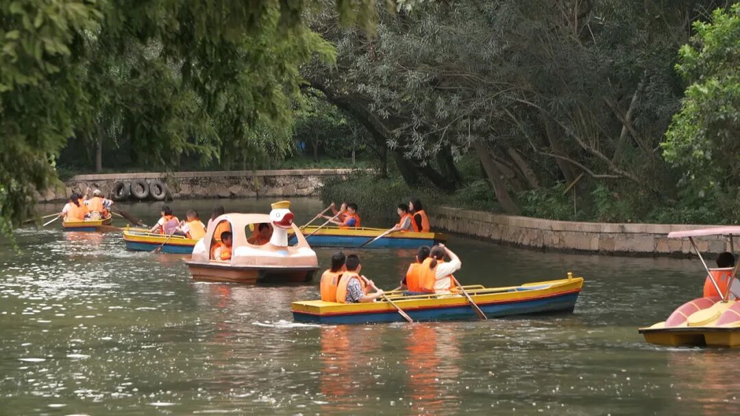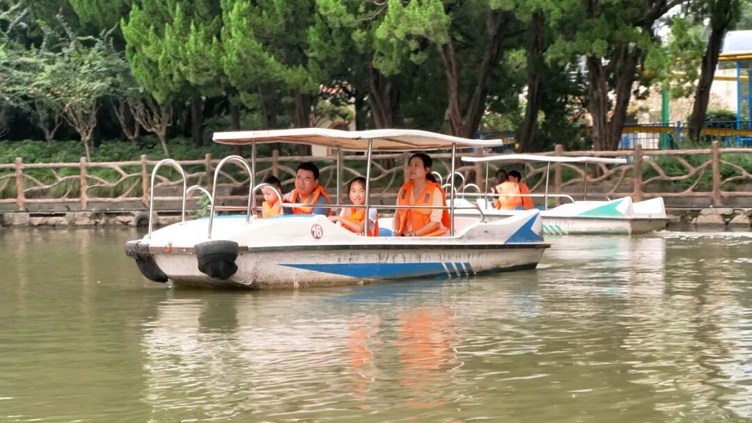 据公园现场工作人员介绍:“这条河道全长约1公里,最深处水深约1.1米。为确保安全,所有游客上船前都必须规范穿戴救生衣,我们也会逐一仔细检查确认。”谈及客流情况,工作人员表示:“平日客流相对平稳,到了双休日,尤其是临近国庆、中秋这样天气凉爽的假期,游客量会明显增多。”