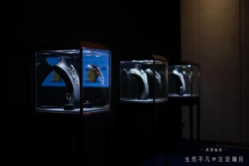 现场,“灵光之境·天然钻石文化艺术展”正式揭幕,本次展览以天然钻石为灵魂线索,通过「时光凝视」「光之传奇」「流光溯影」「心棱光年」与「镜中之你」五大篇章,引领观众踏上一段从地心到人心的非凡旅程。从亿万年的地质奇迹到见证文明的传奇故事,从东西方交融的高级珠宝美学,到以AI互动生成的个人“能量场天然钻石意象”,展览打破了静态陈列的传统,构建了一个多感官、强互动的对话场域。