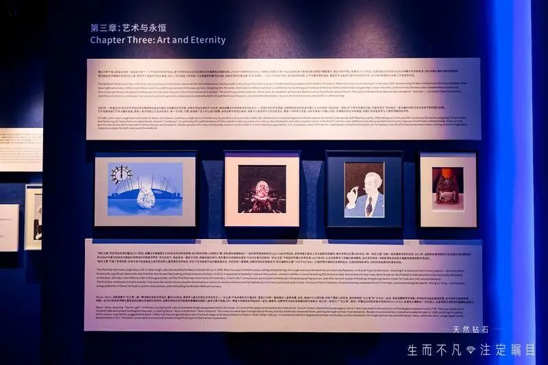 其中,由镜面与LED影像构成的交互装置「镜中之你」成为焦点。在这个半封闭的幽蓝空间内,无数镜面将现实切割、重组成一个影像迷宫,天然钻石科普影片的画面被解构、复制、无限延伸,观众在此不仅是观看者,更是参与者。展览将持续至10月5日。