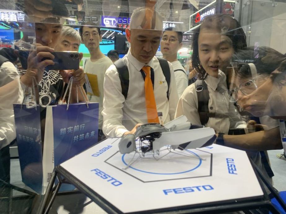 展会现场,仿生蜜蜂(BionicBee)—— 费斯托目前研发的最小巧飞行器,首次登陆工博会舞台,展示群体飞行的秘密,吸引众多观众驻足。“自然与技术是不可分割的整体。费斯托打造的仿生学习网络已有 20 余年历史,在此过程中,我们持续从大自然中汲取灵感,将令人惊叹的生物智慧转化为突破性的工业技术。” 费斯托大中华业务区市场部负责人刘芳介绍。