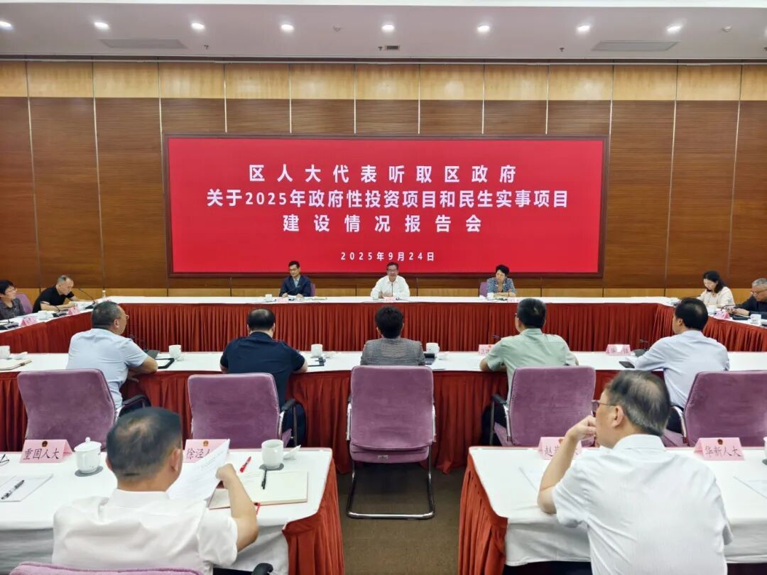 根据区人大常委会年度工作安排,今天(9月24日)下午,区人大组织代表听取2025年政府性投资项目和民生实事项目建设情况报告。区人大常委会主任朱明福出席会议并讲话,区委常委、副区长孙挺出席会议并回应人大代表们提出的意见建议,区人大常委会副主任陶夏芳、吴瑞弟出席。