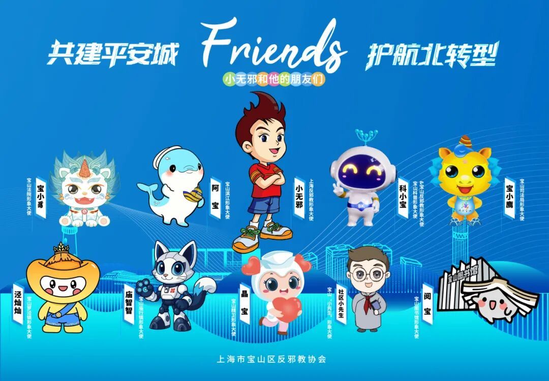 近日,上海市反邪教形象大使“小无邪”,宝山区科普形象大使、反邪教形象大使“科小宝”2位“大使”领衔,会同宝山区其他7位不同单位的形象大使,组成宝山区“反邪天团”,推出“小无邪和宝山朋友”表情包,以超萌形象+实用日常用语,组成12款趣味表情,教您轻松识邪、防邪、反邪,让反邪宣传更加润物无声融入日常生活!