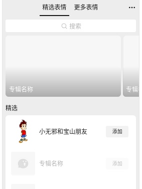 2.搜索“小无邪和宝山朋友”,进入表情专辑页面;