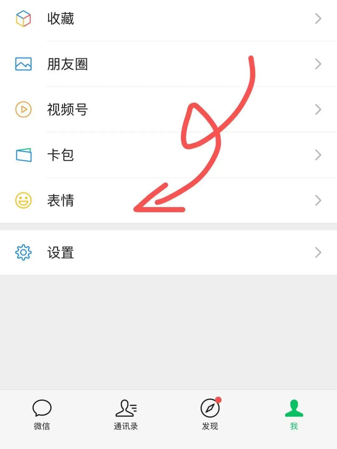 1.打开微信,点击右下角“我”→“表情”;
