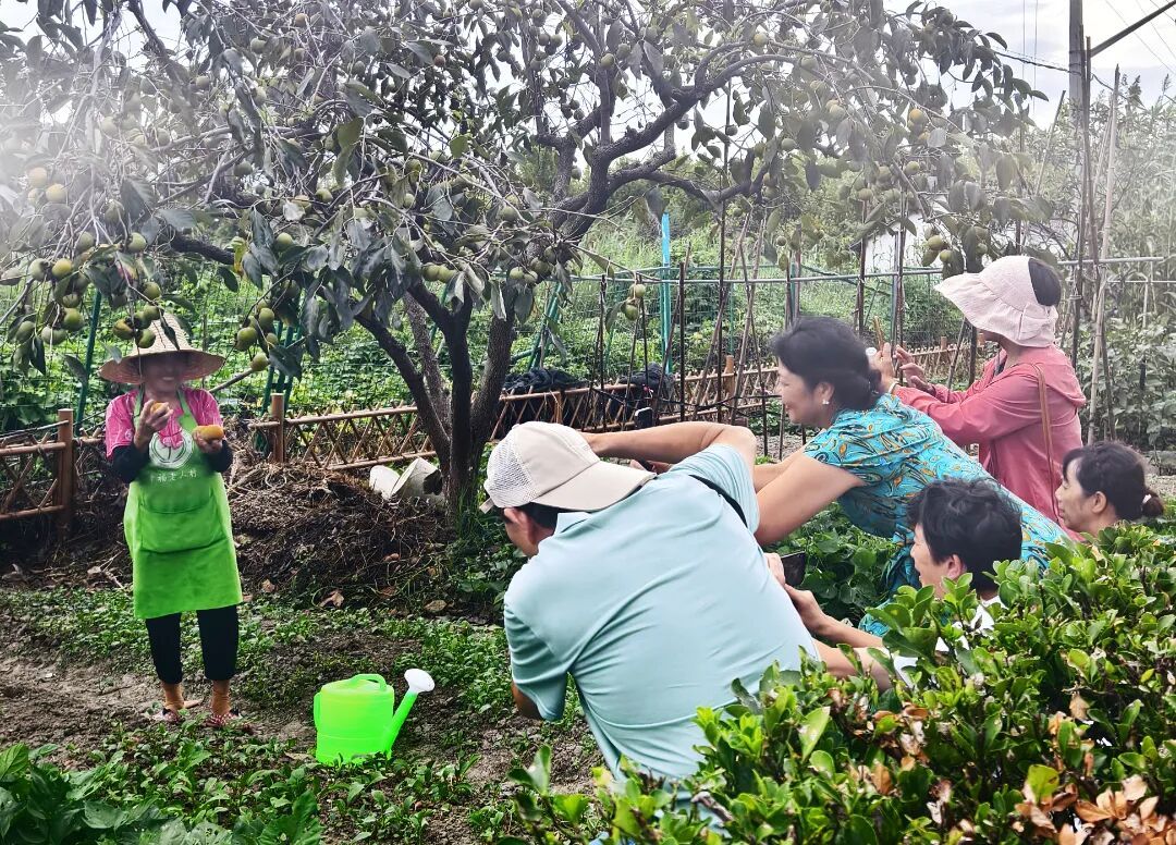 头戴草帽的阿姨在田里浇水、修枝,笑容里满是丰收的喜悦;两位爷叔在桌前对坐弈棋,一派闲适悠然;几位老人结伴排演文艺节目,悠扬的歌声传递着对生活的热爱……采风期间,大家一边信步观摩,一边举起手机、相机,记录下触动自己的美好瞬间。