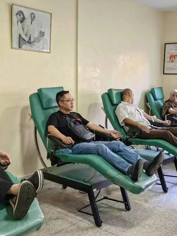 2023年摩洛哥发生强震,张飞功带领队员第一时间投入救援,并献血420毫升。“当时,医院涌入大量伤员,我们必须争分夺秒。”他平静地回忆,“献血是本能反应,我的血能多救一个人,就多一份意义。”这份无畏与担当,让他获得了2024年度援外任期考核“优秀”。
