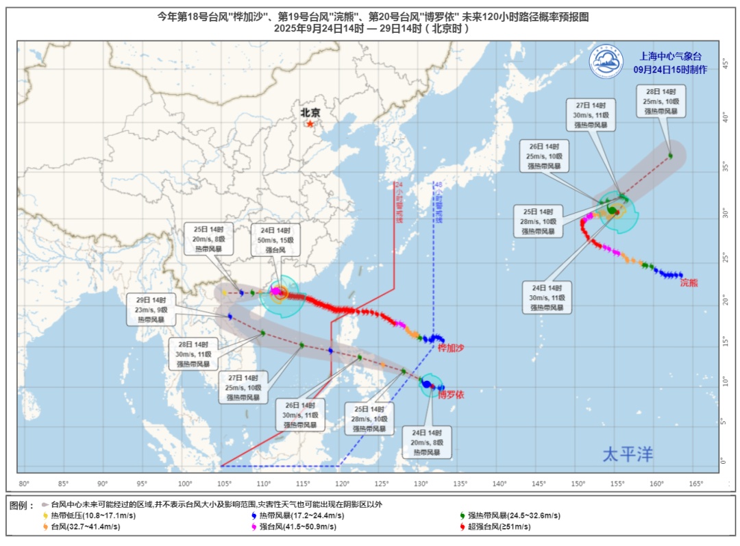 目前,南海和西北太平洋区域有“桦加沙”“浣熊”和“博罗依”三个台风活动。