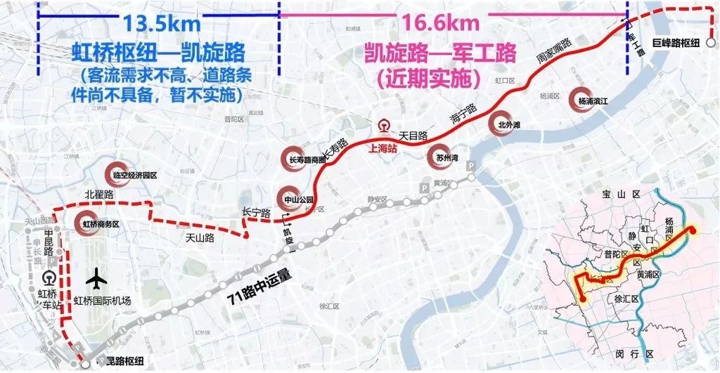 北横中运量公交线路图。上海市交通委 供图