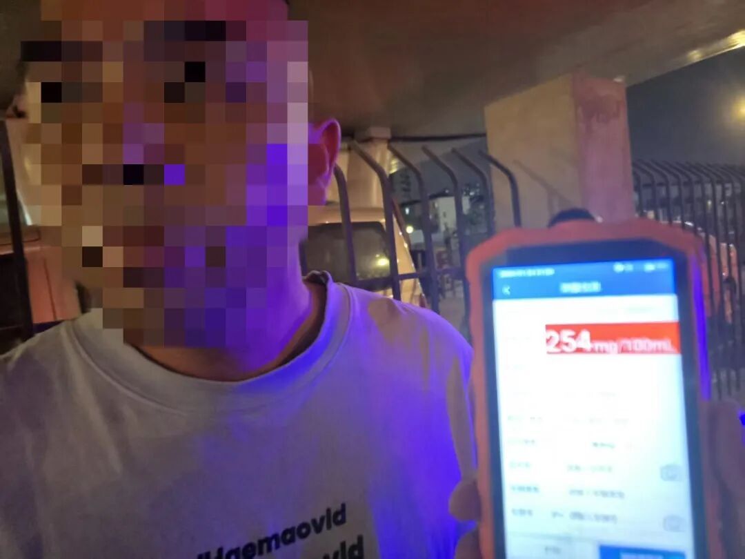 车辆靠边后,民警要求出示驾驶证、行驶证,驾驶员回答没有带,且神情木然,反应迟钝。民警还闻到了一股明显的酒味。随后,增援民警抵达现场,对驾驶员进行了呼气式酒精测试。检测结果显示:254mg/100ml。后经医院抽血检测,驾驶员体内酒精含量高达281mg/100ml,已达醉驾标准。