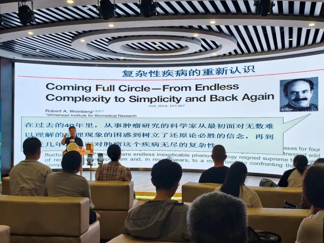 讲座伊始,吴教授回顾了20世纪科学研究的主流思想——“还原论”。他指出,该理论试图将复杂的生命系统拆解为简单的分子和基因进行研究,认为只要彻底了解部分,就能理解整体。这种思想极大地推动了分子生物学的发展,但其局限性也日益凸显。“人类与癌症斗争了40余年仍未取得根本性胜利,一个重要原因就是生命并非简单的‘零件拼凑’,而是一个由多层次、多维度相互作用构成的复杂网络。”21世纪的生命科学已经进入“大数据”和“系统性”研究的新时代,传统的、碎片化的研究方式已无法应对生命现象的本质复杂性。因此,科学家必须拥抱一种全新的认知方式——“复杂性思维”。