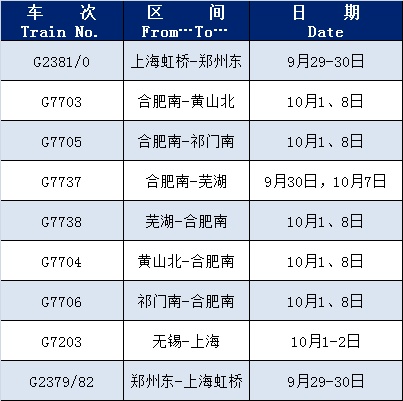 国庆假期即将来临根据旅客出行需求铁路部门增开了部分旅客列车赶快过来看看有没有您需要的车次↓↓↓ 增开列车 统计截止日:9月24日