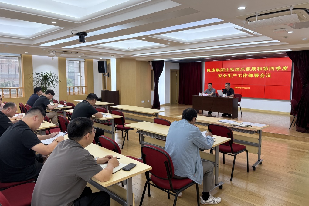 为切实筑牢安全防线,确保国庆、中秋双节期间及第四季度安全生产形势持续稳定,9月23日,虹房集团组织召开国庆、中秋假期和第四季度安全生产部署会议。集团各部门负责人及各下属单位分管领导参加会议。