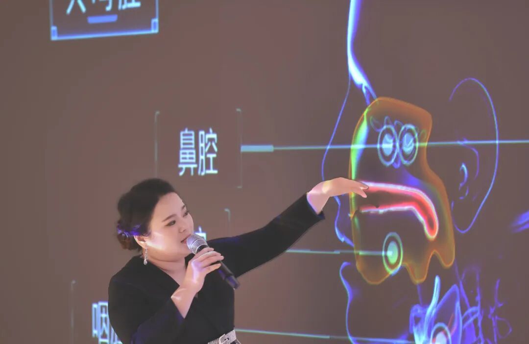 原来,老师在讲解乐理和声时,背后巨大的虚拟钢琴键盘成了最直观的教具。老师们甚至可以通过自动伴奏系统,实现与虚拟钢琴的“四手联弹”,让复杂的和声理论一下子变得清晰明了。而在声乐教学中,老师借助虚拟的人体发声器官模型,直观地展示真假声的演绎方法,让学生们对自己“肚子里的声音”有了更科学的认识。